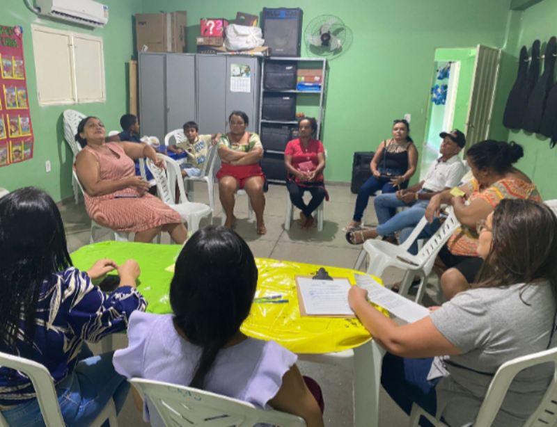 A reunião foi executada pelas técnicas de referência do CRAS, a Psicóloga Esther Sabrina e a Assistente Social Maria Judith. Também estava presente Lindaci Daniel de Lima representando o Busca Ativa Escolar e o Departamento de Políticas Públicas para Mulher.