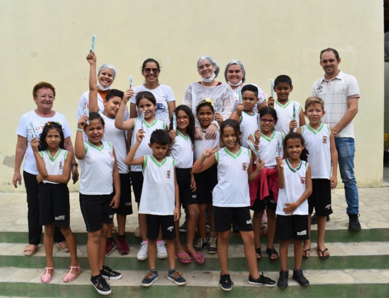 As crianças também receberam orientações diversas sobre a saúde bucal, entre elas a forma certa de realizar a escovação dos dentes, ao final foram entregues escovas dentárias a cada criança.
