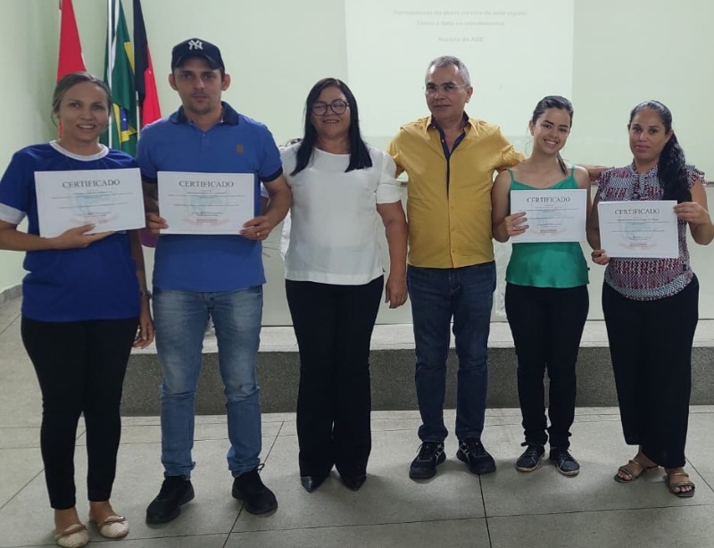 O curso de formação foi ministrado pelo professor/formador da Sala de AEE (Atendimento Escolar Especiaizado) do município, Marcone Alves Monteiro.