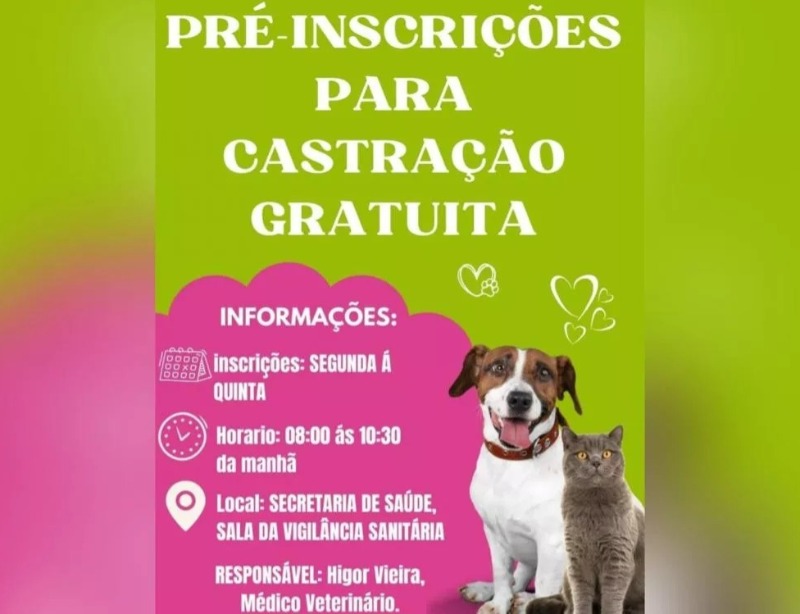 Os tutores interessados devem comparecer à Secretaria Municipal de Saúde de São José do Bonfim, na sala da Vigilância Sanitária. O pré-cadastro será realizado pelo médico veterinário Higor Vieira.